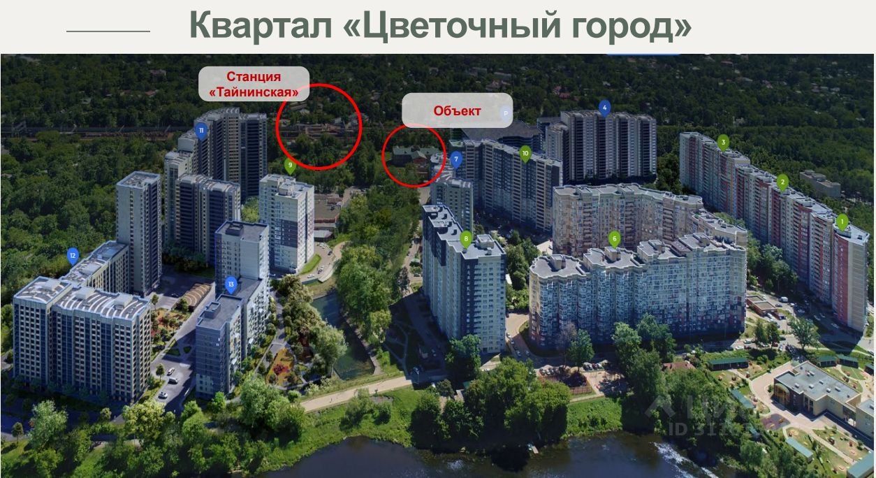 Отличная транспортная доступность: В 2 минутах (200 метров) ходьбы расположена железнодорожная станция Тайнинская Ярославского направления. За 20 минут на электричке можно добраться до станций МЦК Ростокино и метро Медведково. В перспективе строительство линии МЦД до Домодедово. 5 км от МКАД, рядом находятся съезды на Ярославское и Осташковское шоссе —дорога до ТТК займет около 20 минут. Напротив объекта есть 2 автобусные остановки.
