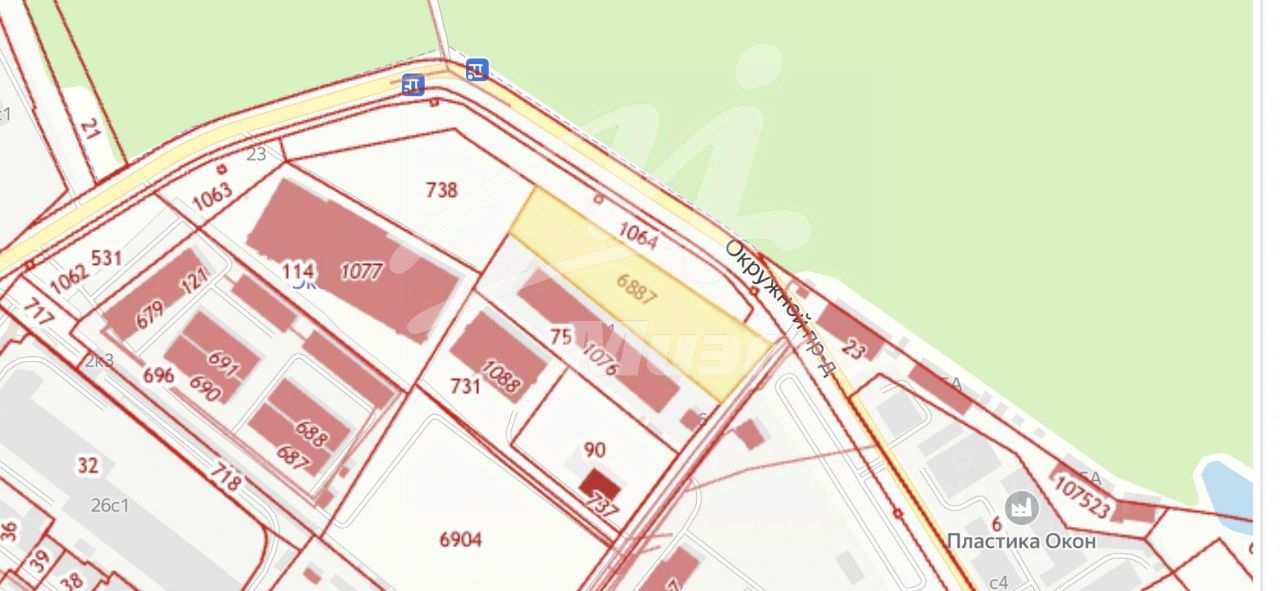 УЧАСТОК: -Правильная прямоугольная форма -Расположен на 1-ой линии Окружного проезда -Вся территория участка устелена бетонными плитами -Имеет высокое бетонное ограждение и широкие ворота -ВРИ - сельхоз.