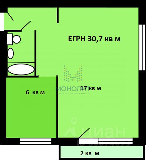 Уютная однокомнатная квартира ( 30.7 кв м по ЕГРН) !