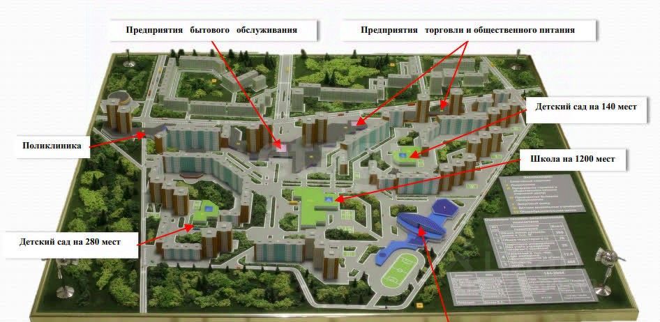 ТЕХНИКО-ЭКОНОМИЧЕСКИЕ ПОКАЗАТЕЛИ • Площадь территории — 28,39 га • Общая площадь жилой застройки — до 360 000 м² • Население — до 12 000 жителей • Плотность — 460 чел./га • Электроснабжение — 8 МВт