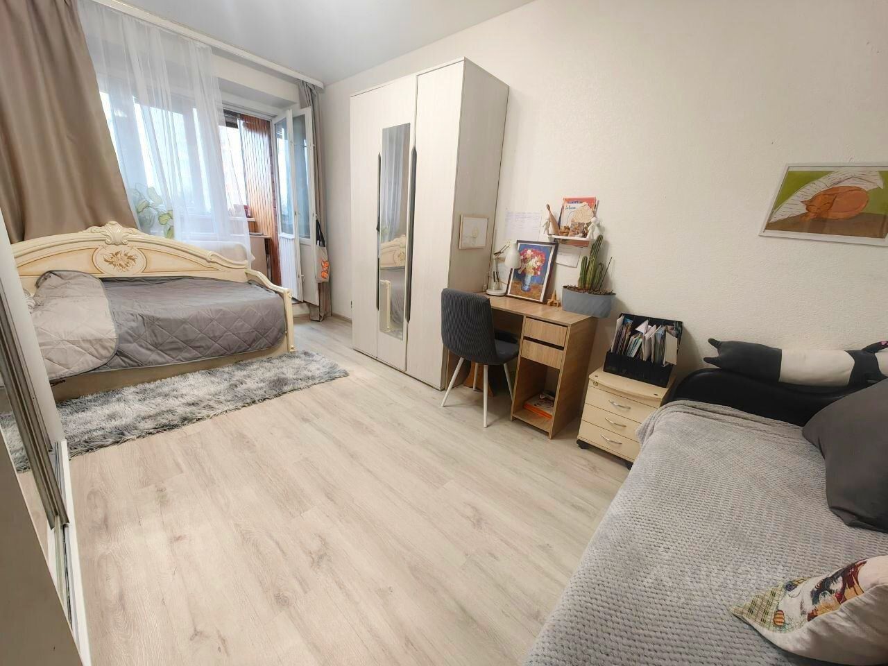 Расположена на 1 (первом высоком) этаже, 9 этажного кирпичного дома. Общая площадь 50,4 кв. М., комнаты изолированные 14,4 и 14,9 кв. М., кухня 9,1 кв. М., санузел раздельный, две лоджии 4,1 и 2 кв. М. Состояние жилое заезжай и живи.